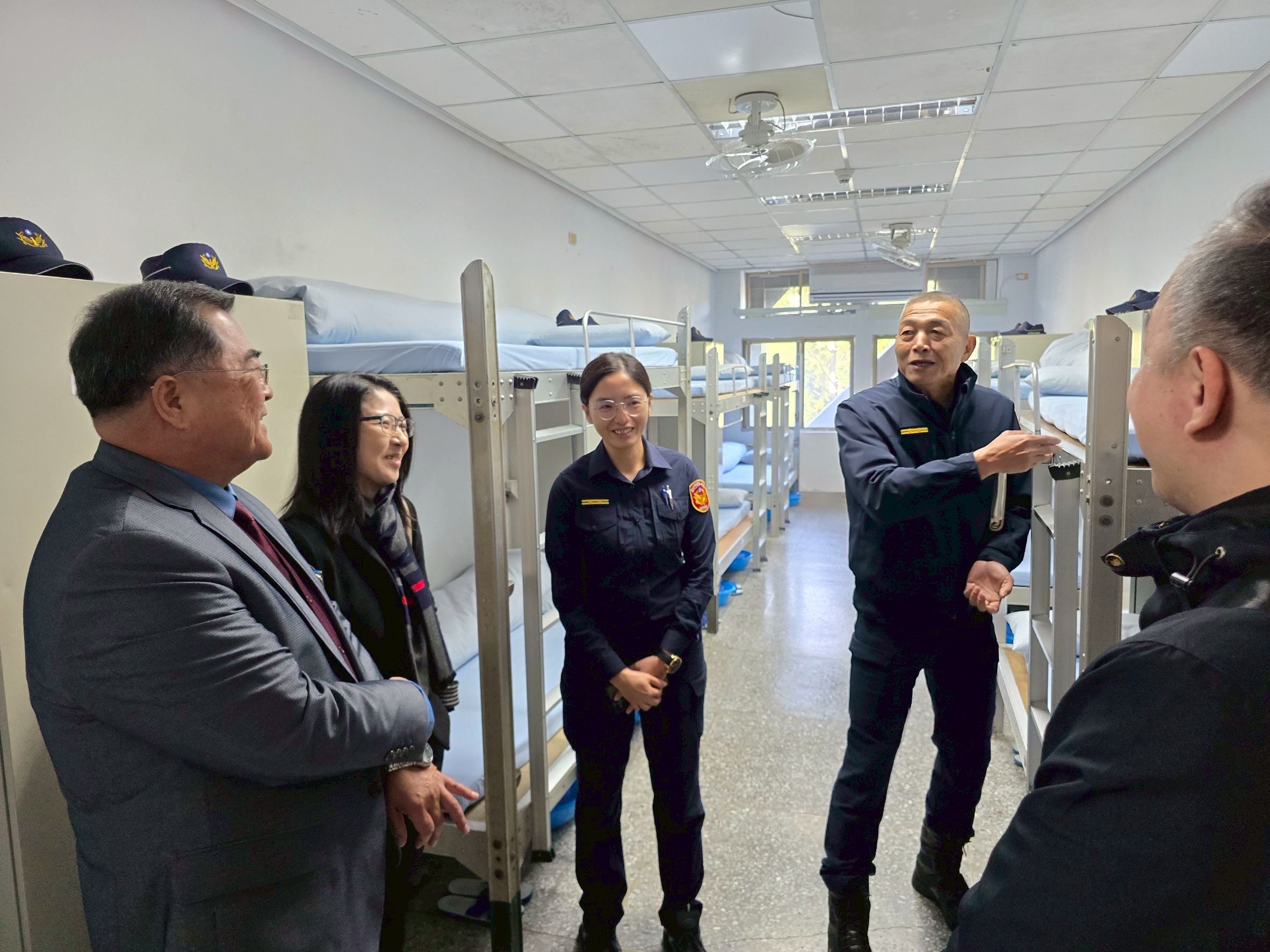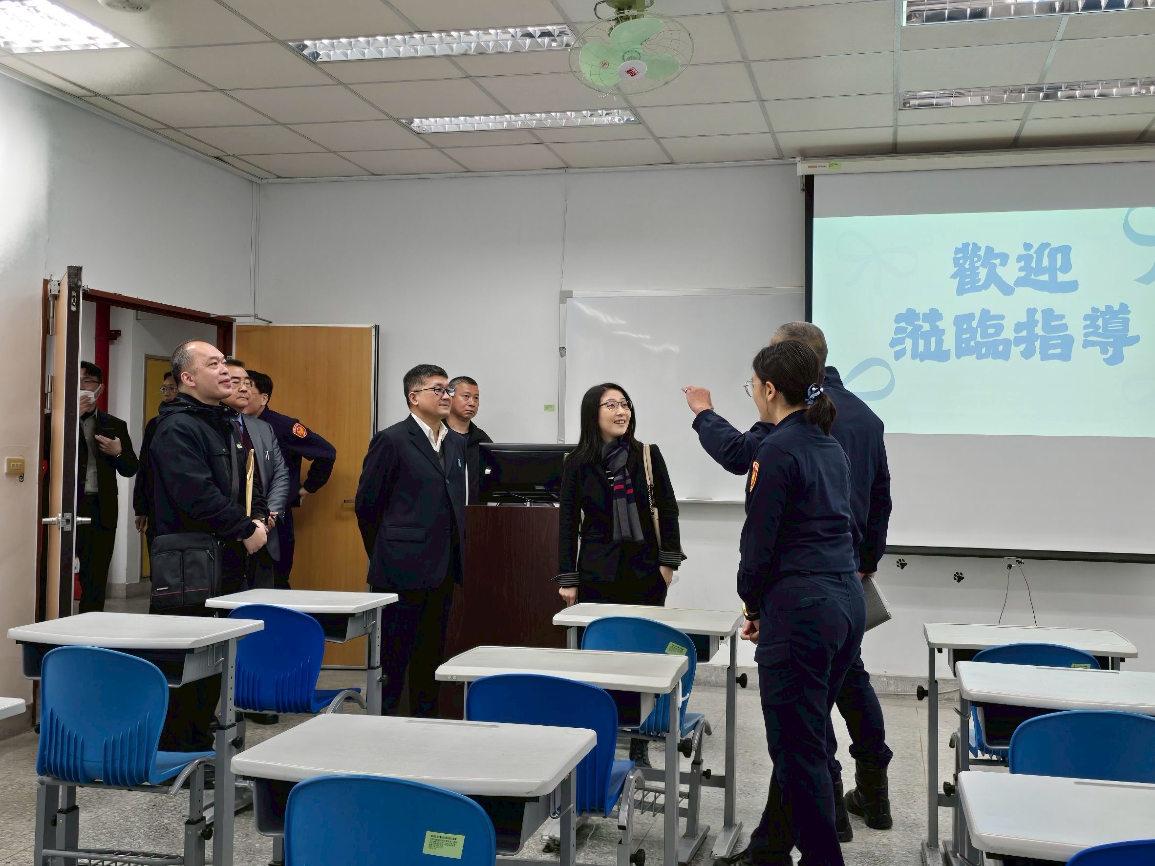 警政署侯科長昌霖、保訓會黃專門委員良惠、警專鄭主任益聰等人於115年1月13日訪視本總隊三峽營區代訓114年特考班整備工作,本總隊侯督察政德、陳大隊長世明等幹部陪同與會,針對學員駐地、餐廳、教室、體技場地、設備、生活管理及性別平權與霸凌防治等進行溝通說明,獲得與會長官的支持與肯定,本總隊將持續優化教學環境與資源,提升整體訓練深度。