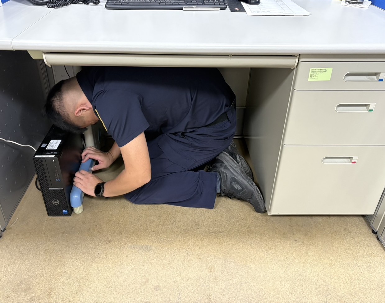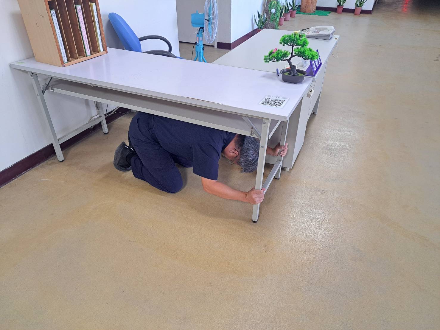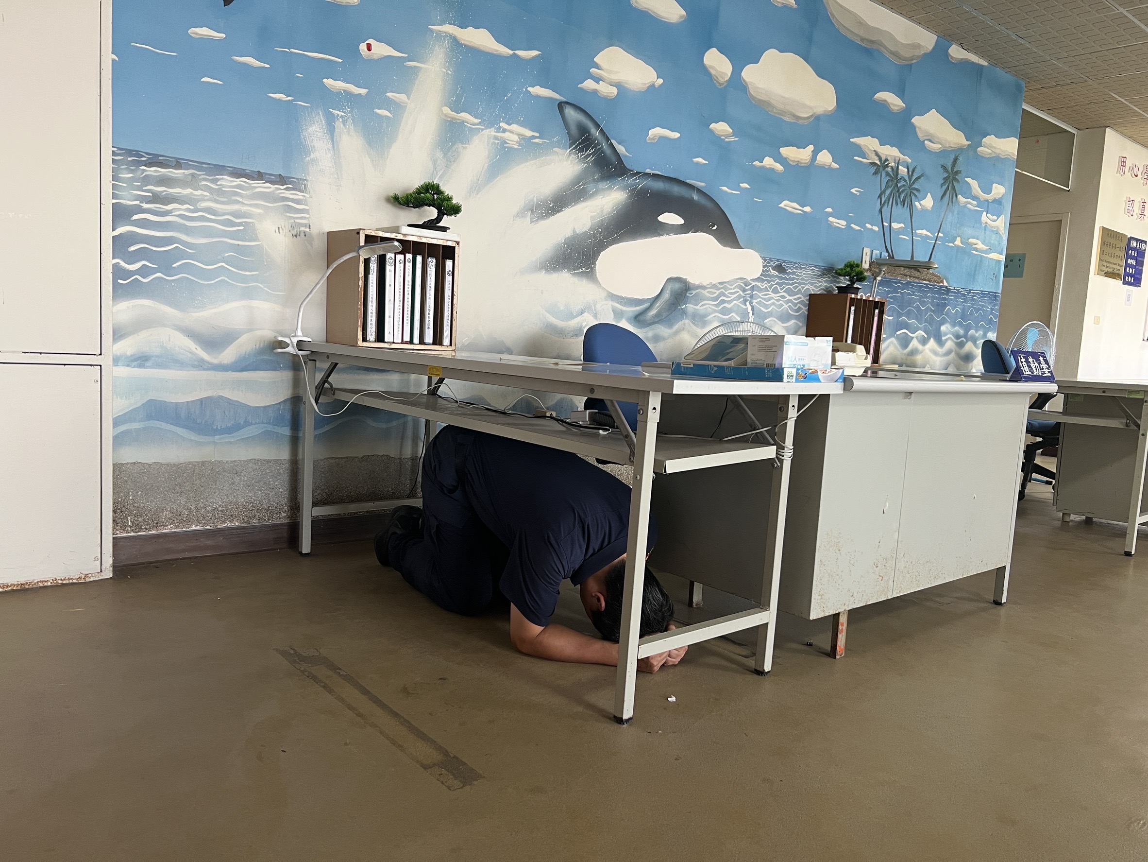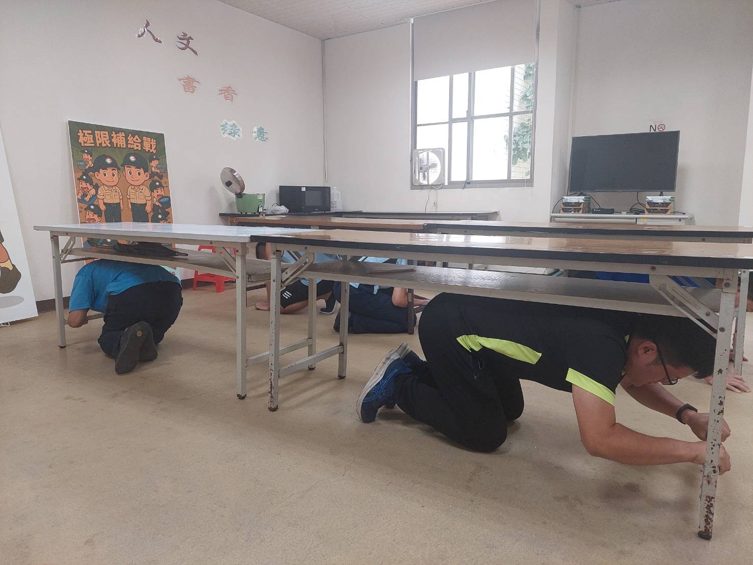 第二大隊辦理地震防災演練-我國每年9月21日為「國家防災日」,政府以國家層次的規模推廣地震避難之知識與技能,同時宣導民眾加強地震等平時防災準備,以確保民眾自身安全,落實震災準備及應變,為建立同仁正確防災知識、加強防災教育及提升地震災害應變能力,本大隊透過地震避難3步驟(趴下 Drop、掩護 Cover、穩住Holdon)實地演練,增進全體同仁正確防災知識及提升地震災害應變能力。