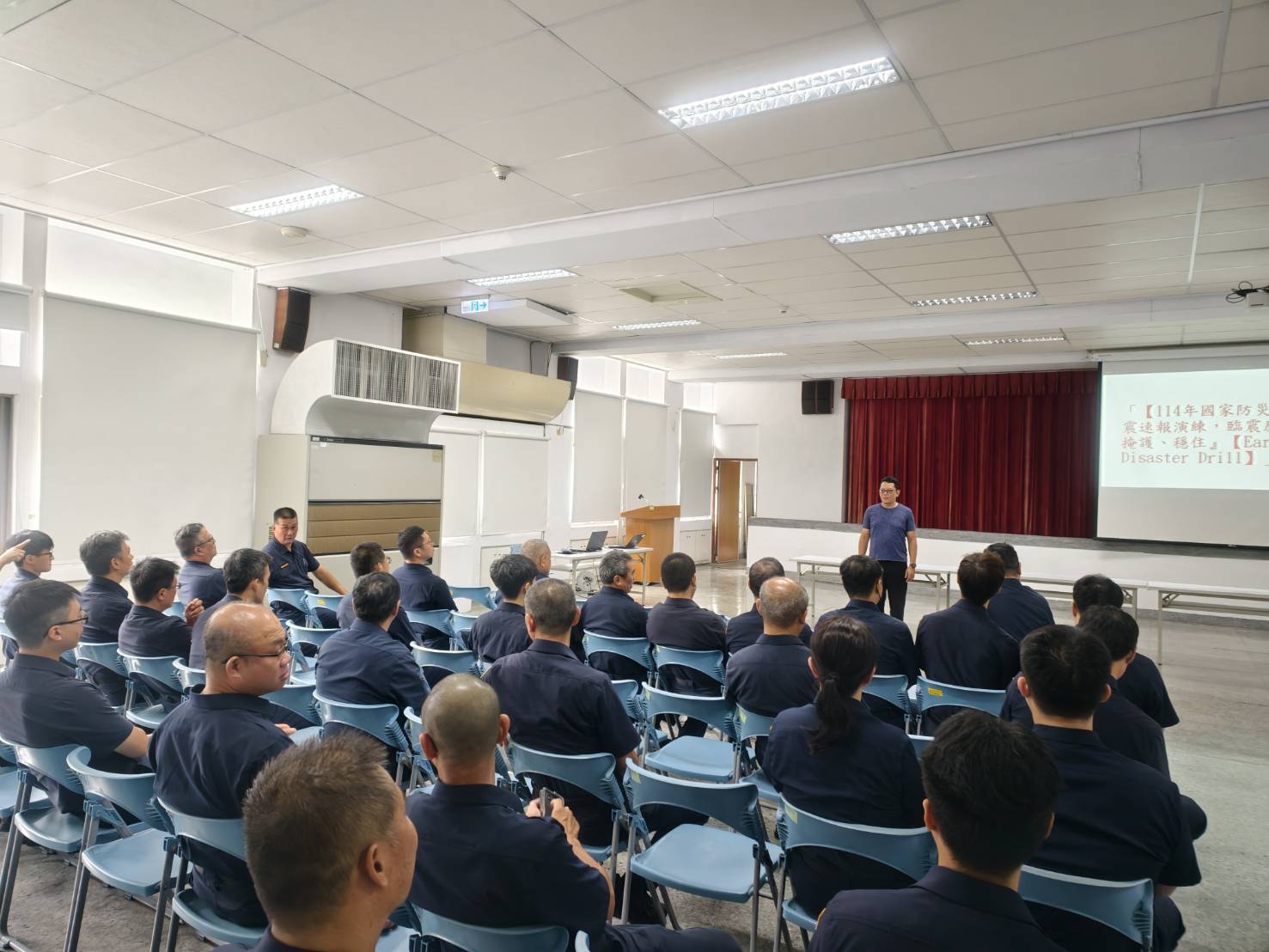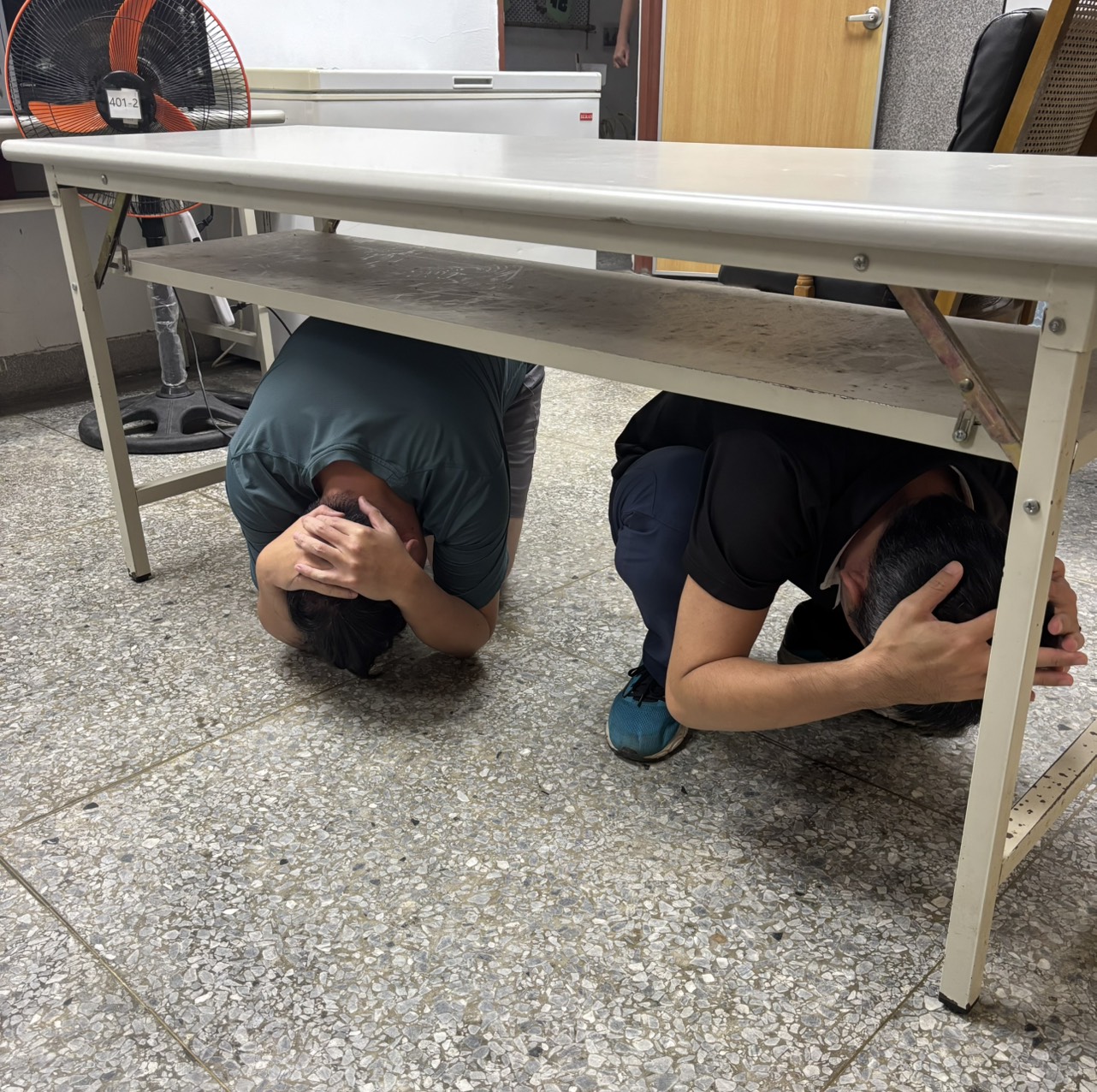 第五大隊辦理地震防災演練-我國每年9月21日為「國家防災日」,政府以國家層次的規模推廣地震避難之知識與技能,同時宣導民眾加強地震等平時防災準備,以確保民眾自身安全,落實震災準備及應變,為建立同仁正確防災知識、加強防災教育及提升地震災害應變能力,本大隊透過地震避難3步驟(趴下 Drop、掩護 Cover、穩住Holdon)實地演練,增進全體同仁正確防災知識及提升地震災害應變能力。